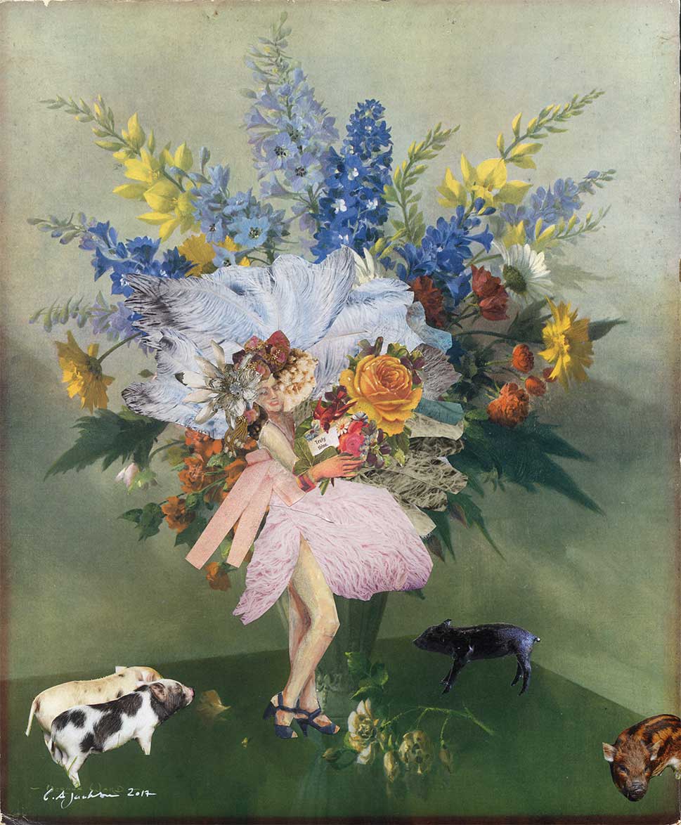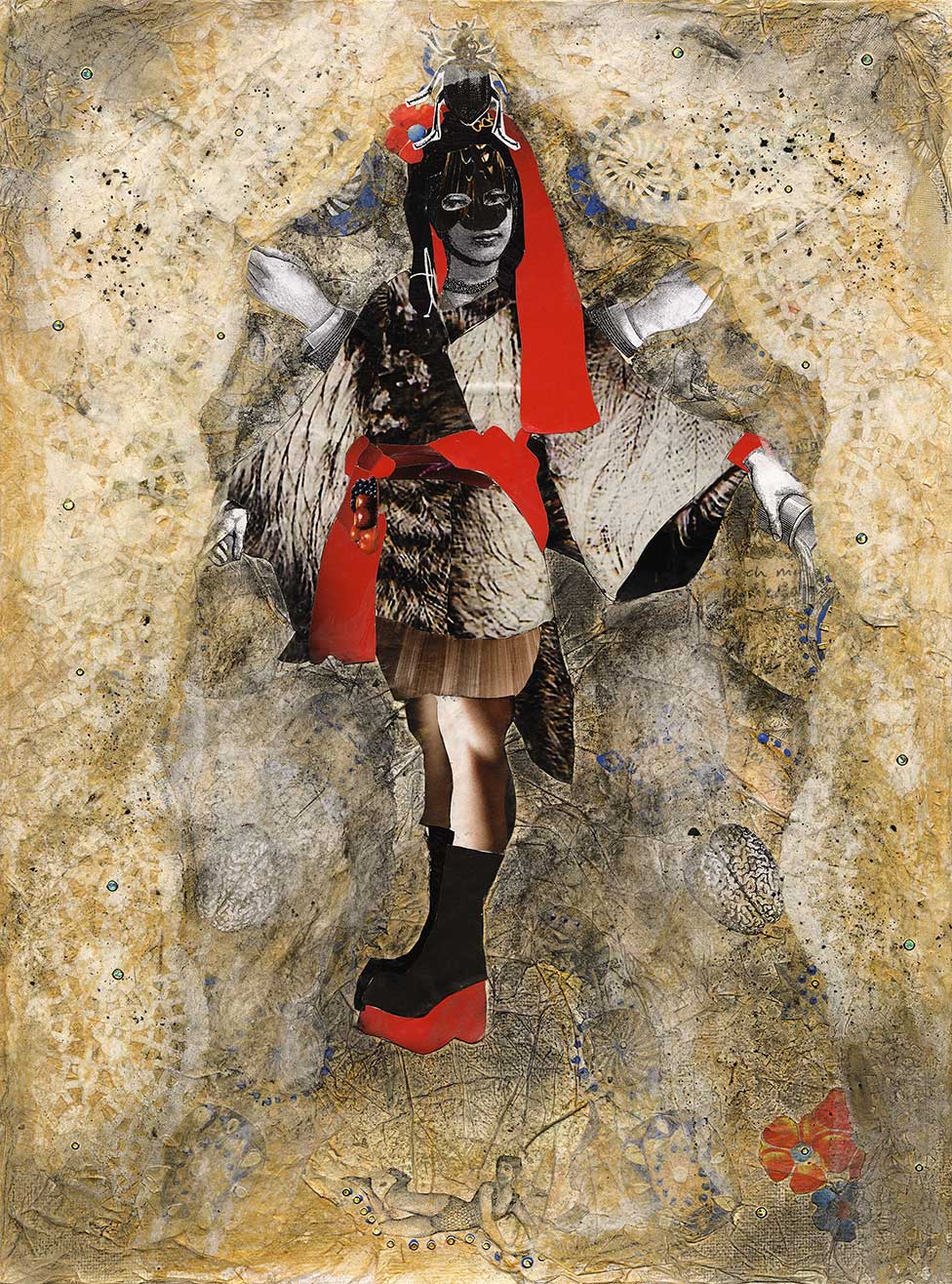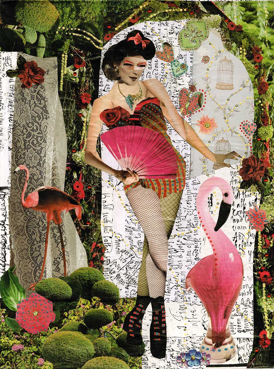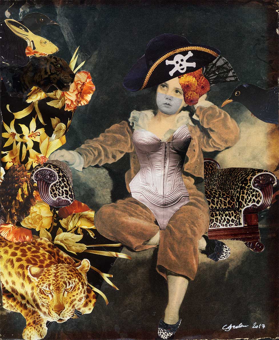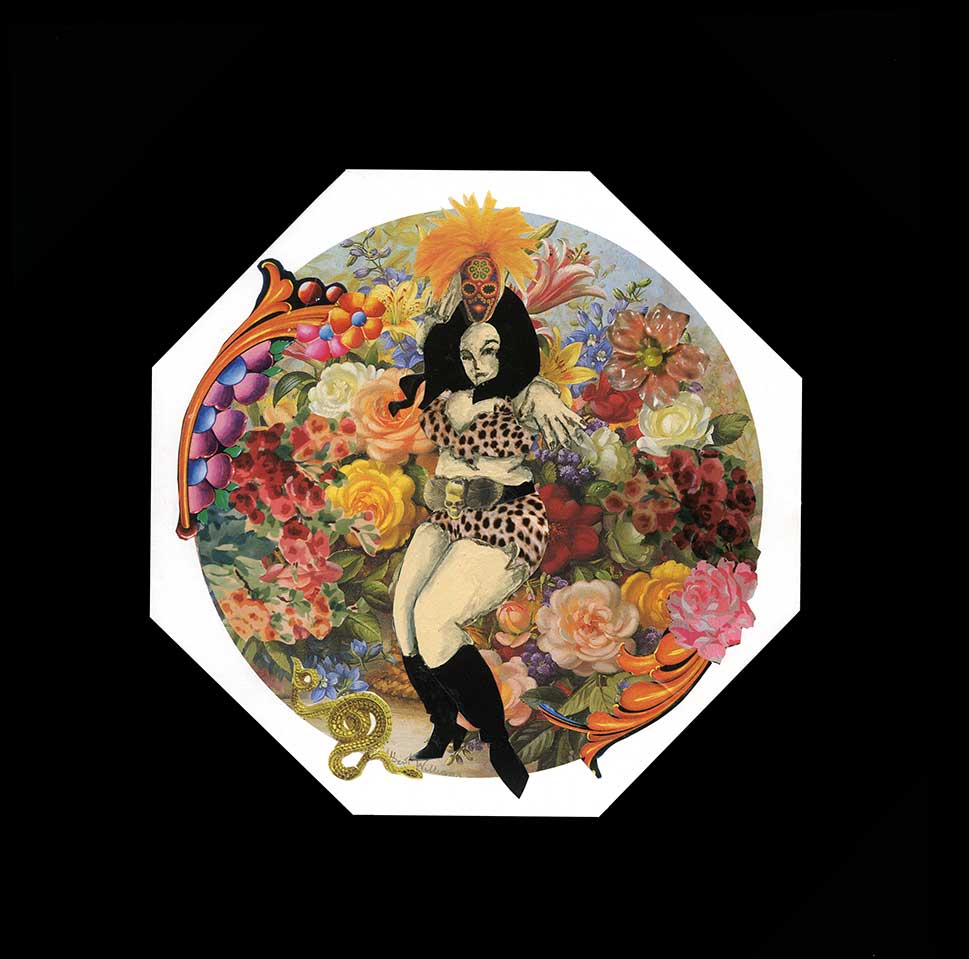 Dita von Teese/Amy Winehouse mash-up riding a taxidermy Leopon